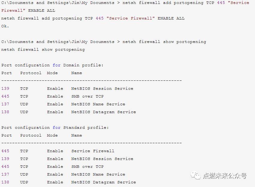 Next, we need to alter the system to allow remote connections through the firewall to our netcat backdoor. We open up an interactive command prompt and use the ‘netsh’ command to make the changes as it is far less error prone than altering the registry directly. Plus, the process shown should work across more versions of Windows, as registry locations and functions are highly version and patch level dependent.